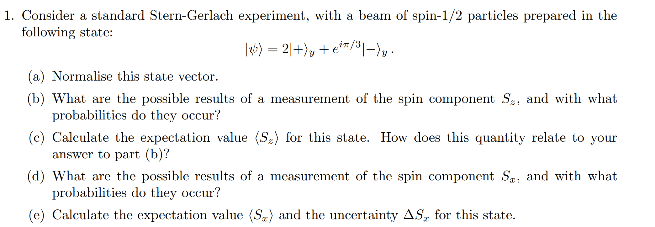 Solved 1 Consider A Standard Stern Gerlach Experiment With Chegg Com